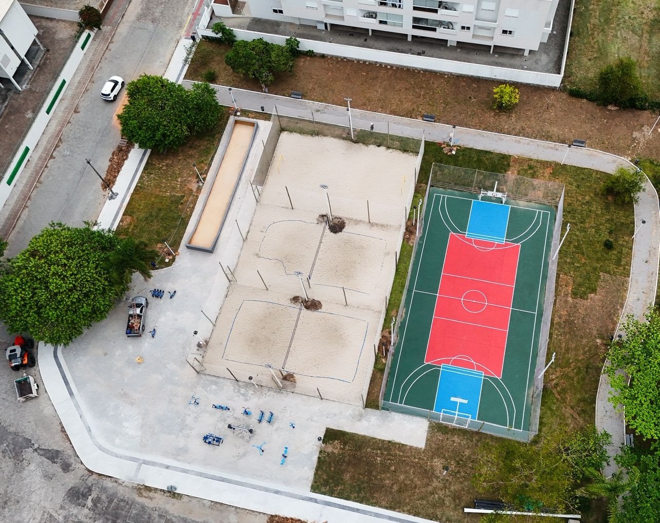 A nova praça fica em frente ao Parque das Famílias, que também é municipal e contava com playground, pet place e bancos. A Prefeitura adicionou mais quatro brinquedos novos e restaurou os equipamentos existentes.