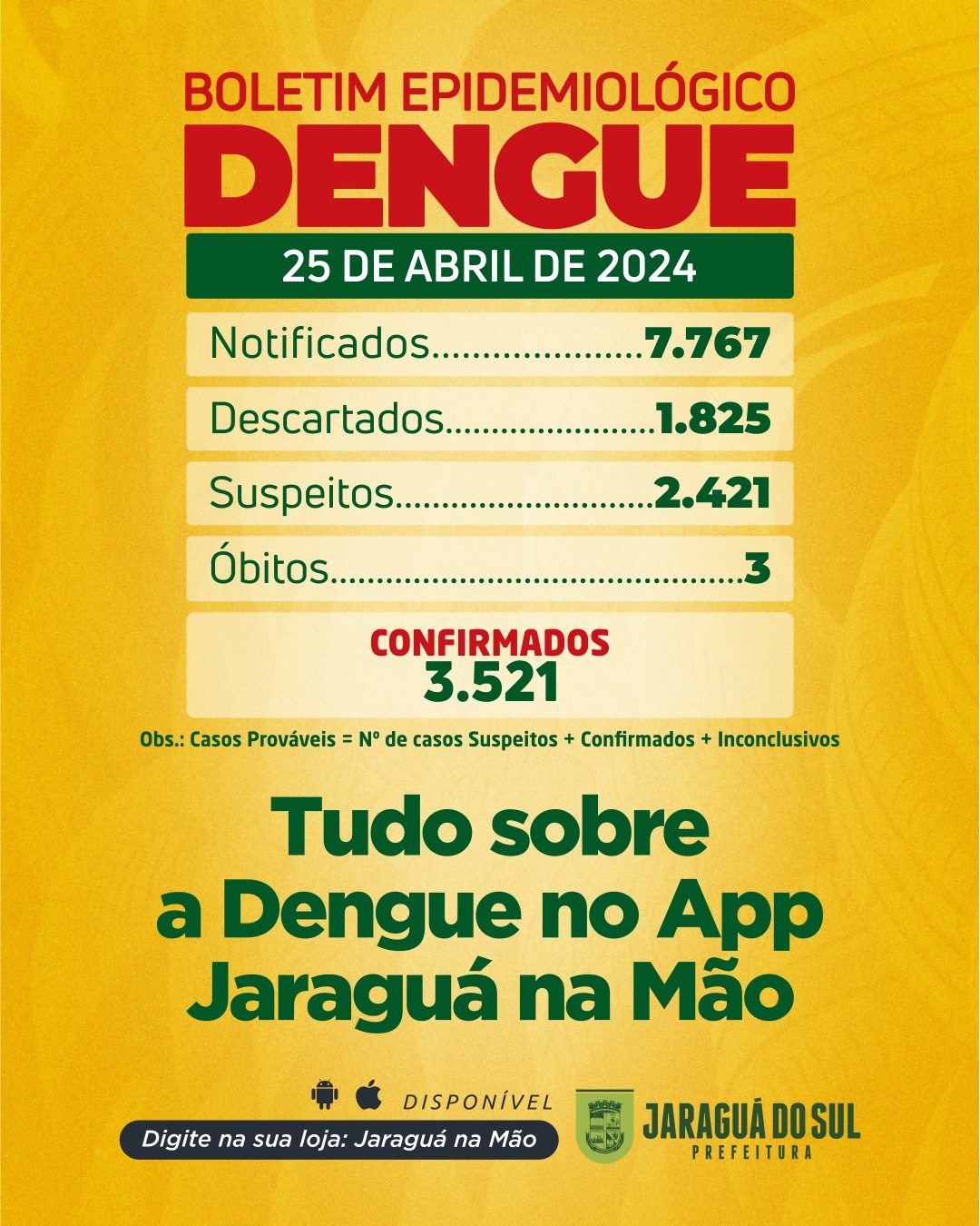 O Boletim Epidemiológico da dengue desta quinta-feira (25) revela que, em três dias, Jaraguá do Sul registrou 716 novos casos de dengue.