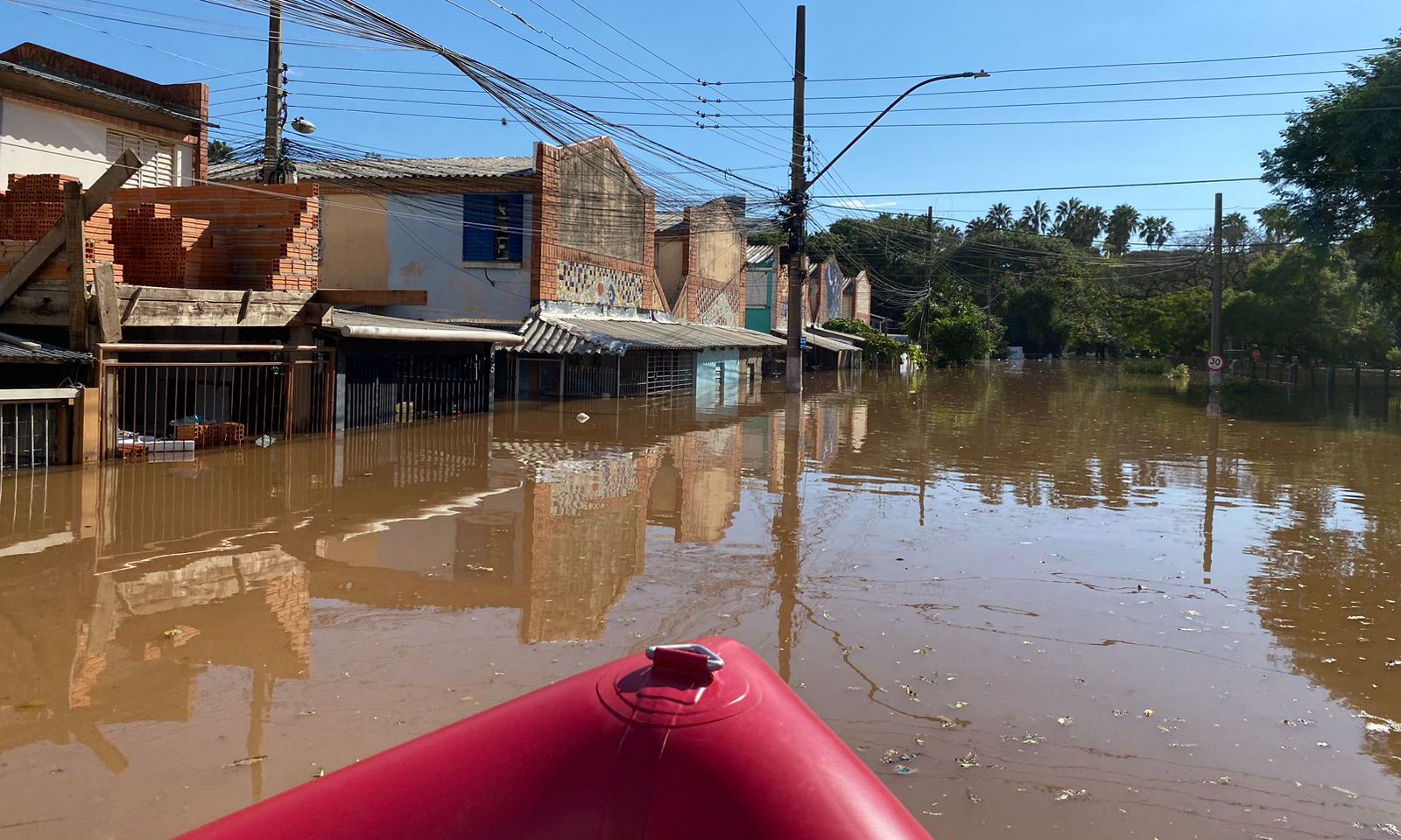 Na quarta-feira, a operação de resgate se concentrou no bairro Menino Deus, em Porto Alegre. Em um dos atendimentos, foram retiradas três pessoas que estavam no segundo andar de um prédio.