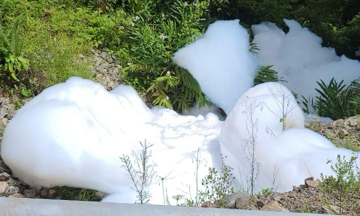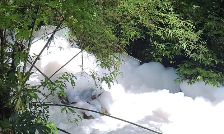 O prefeito Adriano Silva sobrevoou o local com o helicóptero Águia, da Polícia Militar, e constatou que o produto avança com velocidade pelas águas da região.