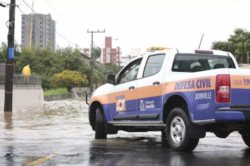 A Defesa Civil de Joinville emitiu alerta para a ocorrência de um novo temporal com chuva intensa em poucos minutos nesta segunda-feira (29). O risco é considerado muito alto para enxurradas e alagamentos, especialmente entre o meio da tarde e o início da noite, em Joinville.