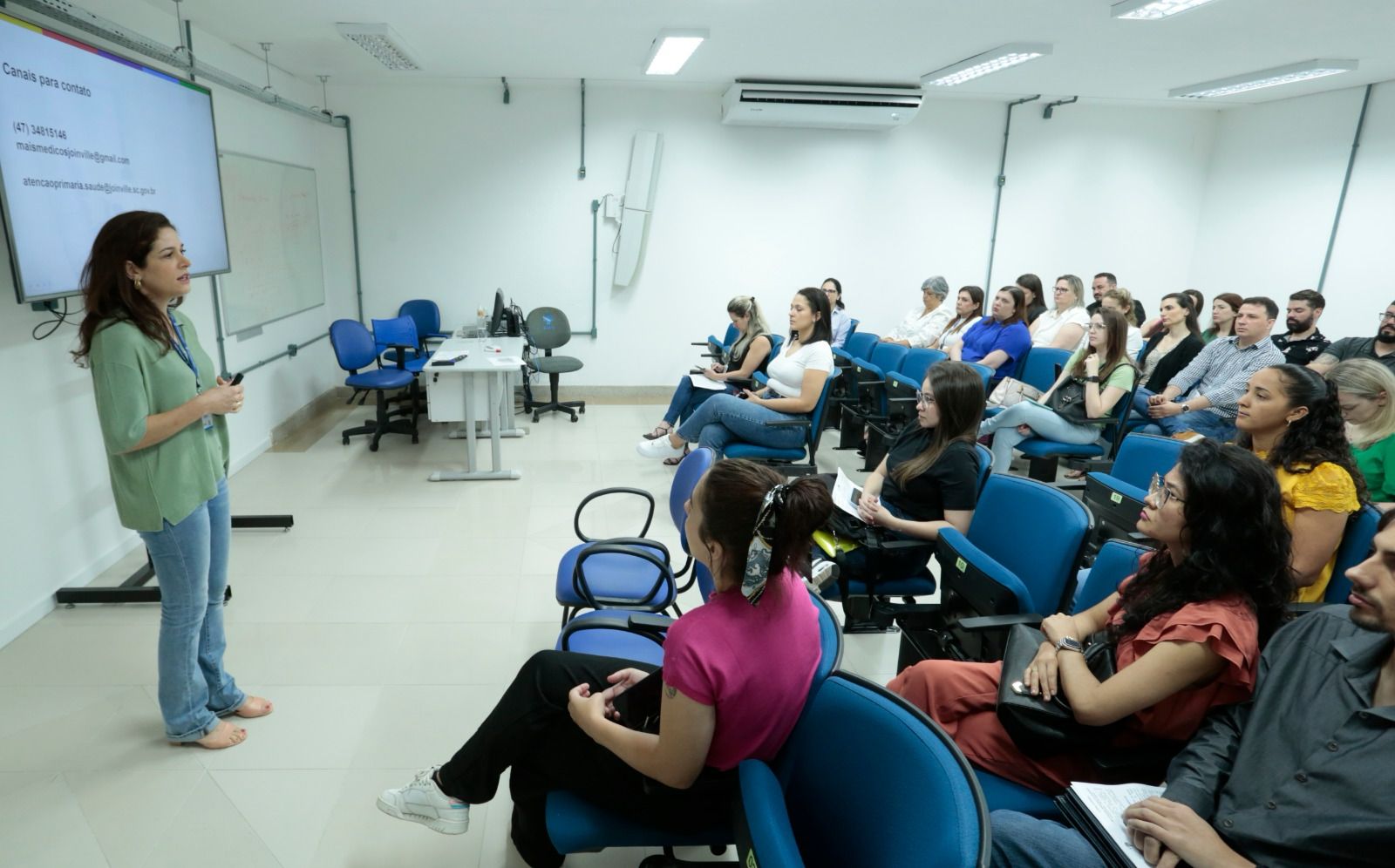 No encontro, os profissionais contratados receberam orientações gerais sobre a estrutura institucional da Prefeitura de Joinville e da Secretaria da Saúde, e tiveram contato com coordenadores das Unidades Básicas de Saúde da Família (UBSFs) onde irão atuar.