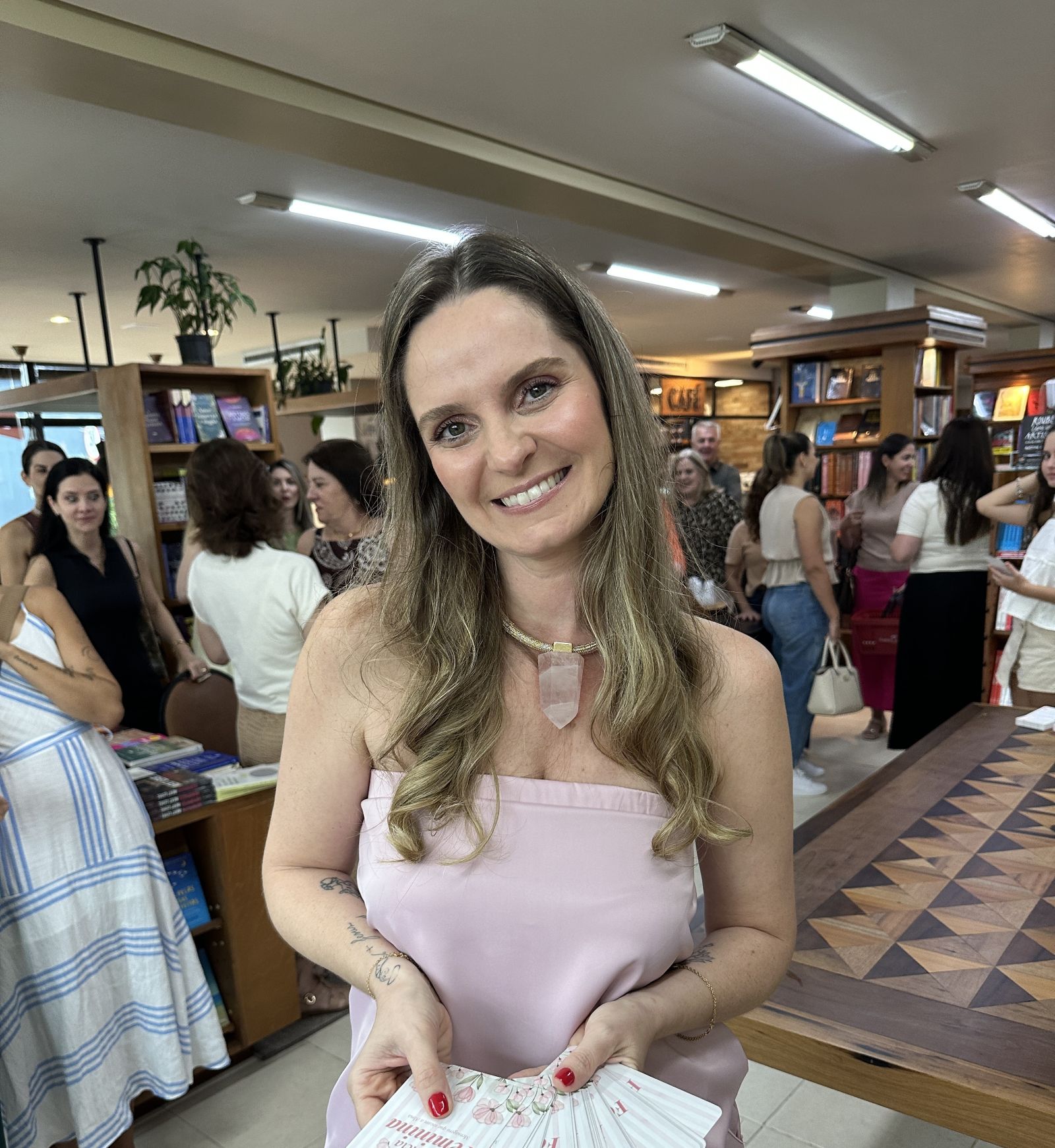 Na rotina de exercer diversos papéis, muitas mulheres acabam deixando de lado momentos de autoconhecimento e autocuidado. Com o propósito de levar orientação e inspiração para esse público, a mentora multipotencial Juliana Karla Conti promoveu, neste sábado (21), na Grafipel, o lançamento do projeto Cartas da Essência Feminina.