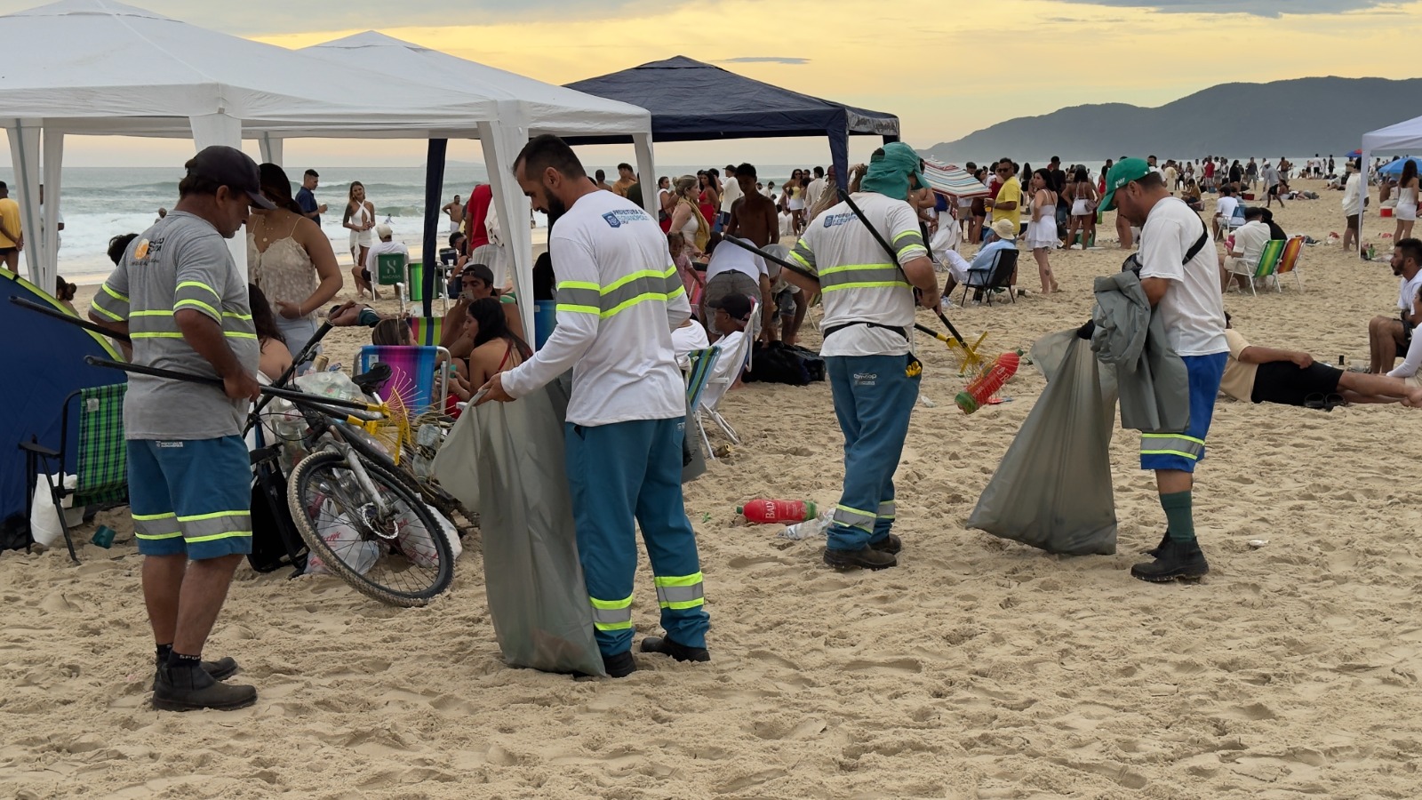 Os serviços de limpeza pública e coleta de resíduos das festas públicas de Réveillon mobilizam mais de 400 pessoas em Florianópolis. O contingente opera em três turnos desde a zero hora deste dia 1º de janeiro, atendendo as avenidas Beira-Mar Norte e Continental e os principais balneários.