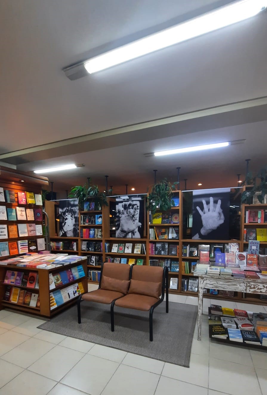 A escolha do local da exposição remete à relação de costura com o ambiente dos livros. “Em muitas linhas ditas com suas histórias… Linhas da mão e linhas da vida… Vidros externos… A rua como galeria… Fotos nos vidros. Deslocamento de um ambiente fechado para o aberto. Você caminha e vê as imagens na sua frente…”, observa Paloschi.