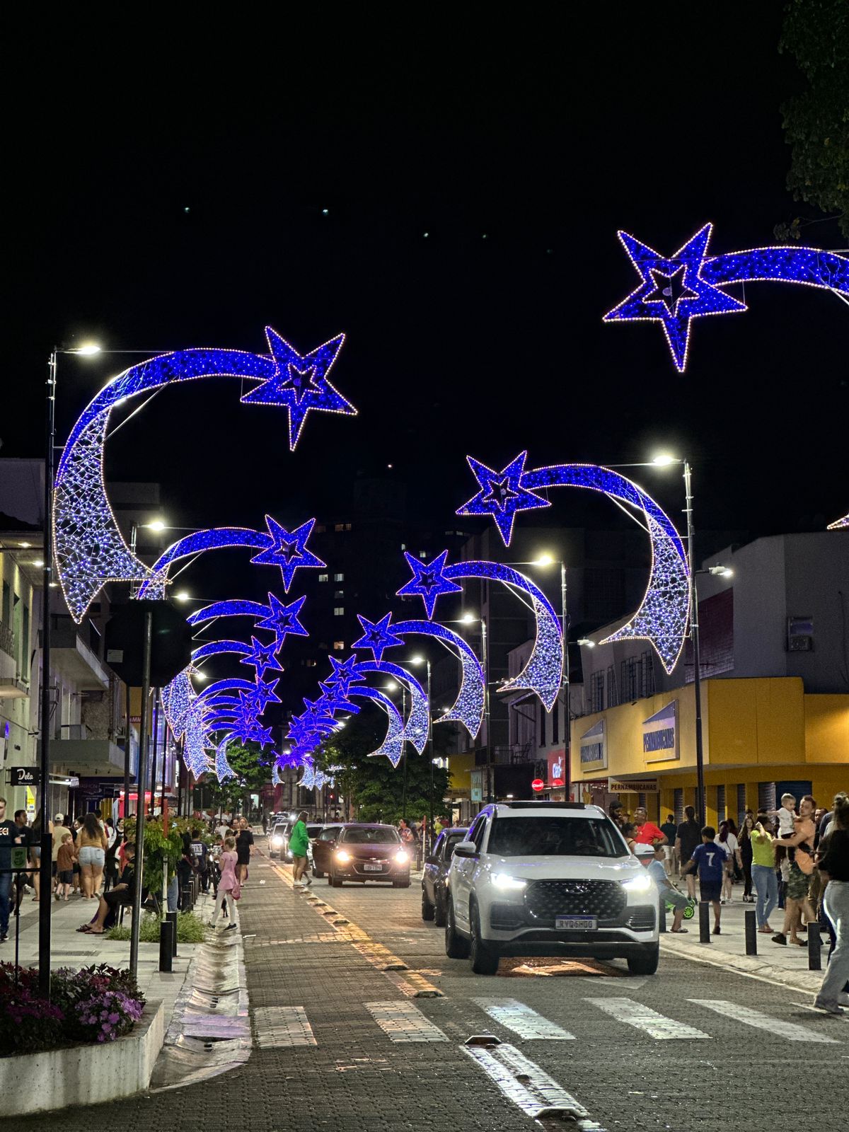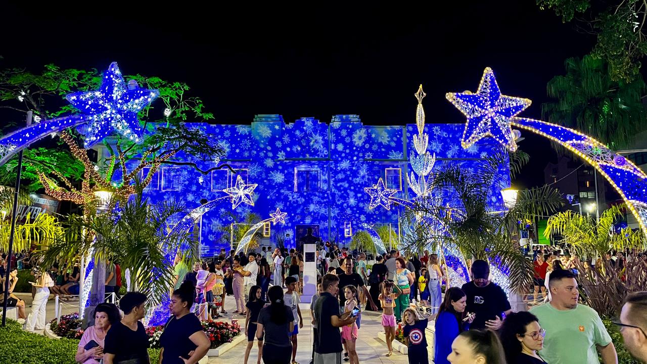 Jaraguá do Sul já está no clima do Natal. A noite desta terça-feira (19), foi marcada por um dos momentos mais aguardados pela população nesta época do ano: o tradicional acendimento das luzes de Natal e chegada do Papai Noel, no centro da cidade. Quem prestigiou o evento na Praça Ângelo Piazera teve a oportunidade de ver de perto todo o colorido da decoração pensada nos mínimos detalhes para ressaltar o espirito natalino na cidade. Não foram poucas as expressões de surpresa e encantamento do público. O tema deste ano da decoração natalina é “Estrelas”.