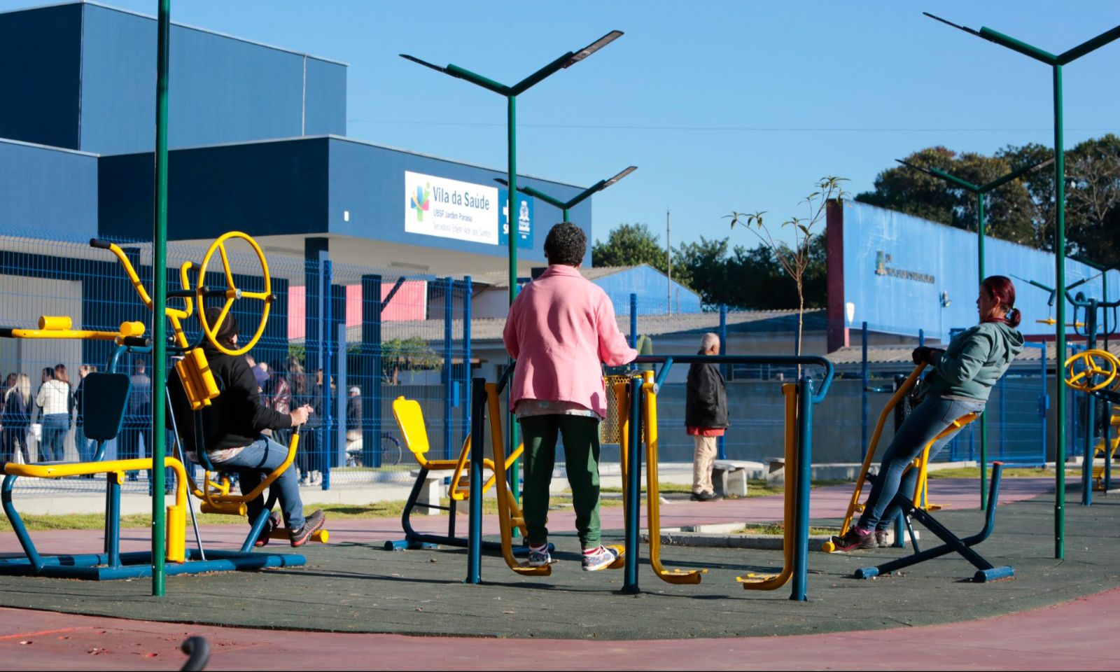 Na área externa, a Vila da Saúde oferece à comunidade espaços para a prática de atividades físicas e integração, como pista de caminhada, playground e academia ao ar livre.