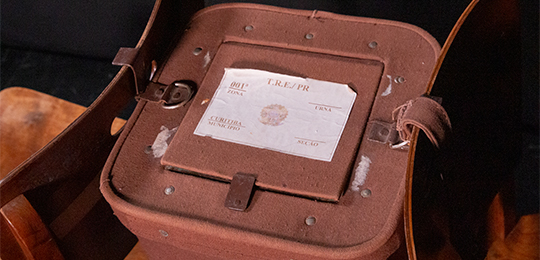 - Urna de lona exposta no museu.