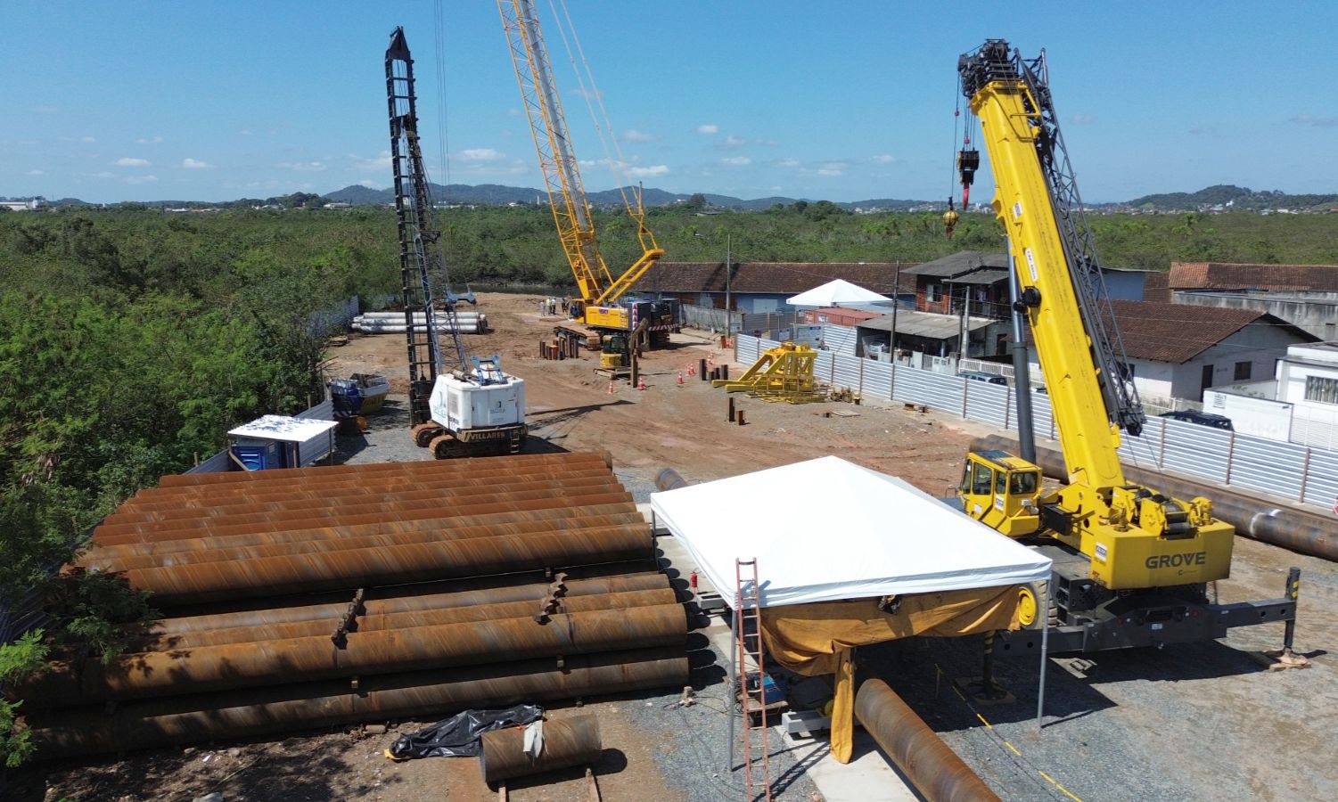 As obras da Ponte Joinville estão avançando na margem situada no bairro Boa Vista. Conforme a Prefeitura, estão sendo cravadas as estacas metálicas dos blocos da ponte e da linha de transição, que é o encontro da parte de concreto com o aterro situado na rua São Leopoldo.