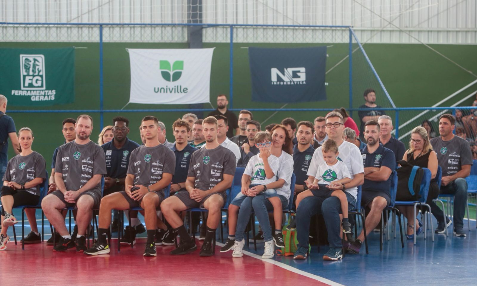 Após o evento, os alunos inscritos no “Novos Ventos” participaram de uma aula inaugural ao lado de atletas e comissão técnica do Joinville Vôlei. Os familiares e demais estudantes também acompanharam a atividade da arquibancada do ginásio.