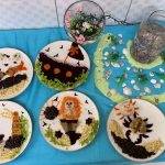 Caranguejos e sereias formados por grãos de arroz e pedaços de beterraba, oceanos de feijão, leões com juba de cenoura e estrelas de melancia e kiwi.