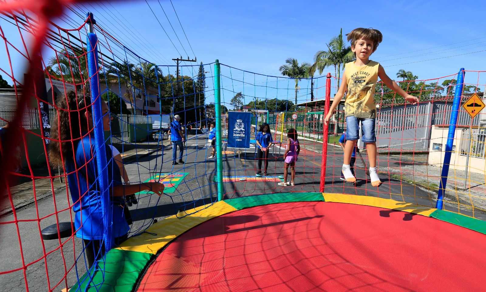 Para a comunidade aproveitar o domingo, no período da manhã, a Secretaria de Esportes esteve na Rua Copacabana com atividades recreativas e esportivas.