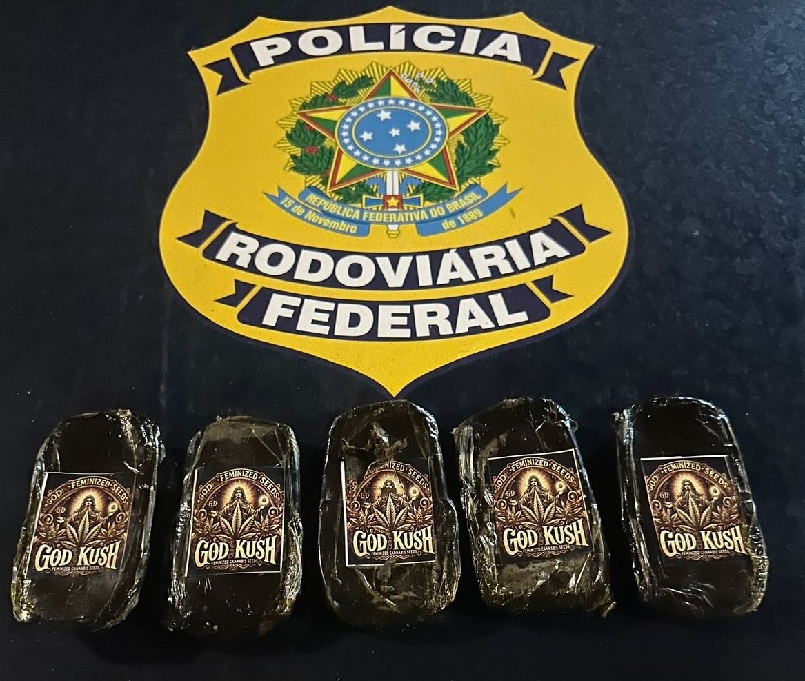 Os PRFs retornaram ao ponto onde a sacola havia sido descartada. No local, foram encontrados cinco tabletes de haxixe, totalizando 500 gramas do entorpecente. Conhecido como “supermaconha”, o haxixe tem até cinco vezes mais concentração de THC (composto psicoativo da planta cannabis).