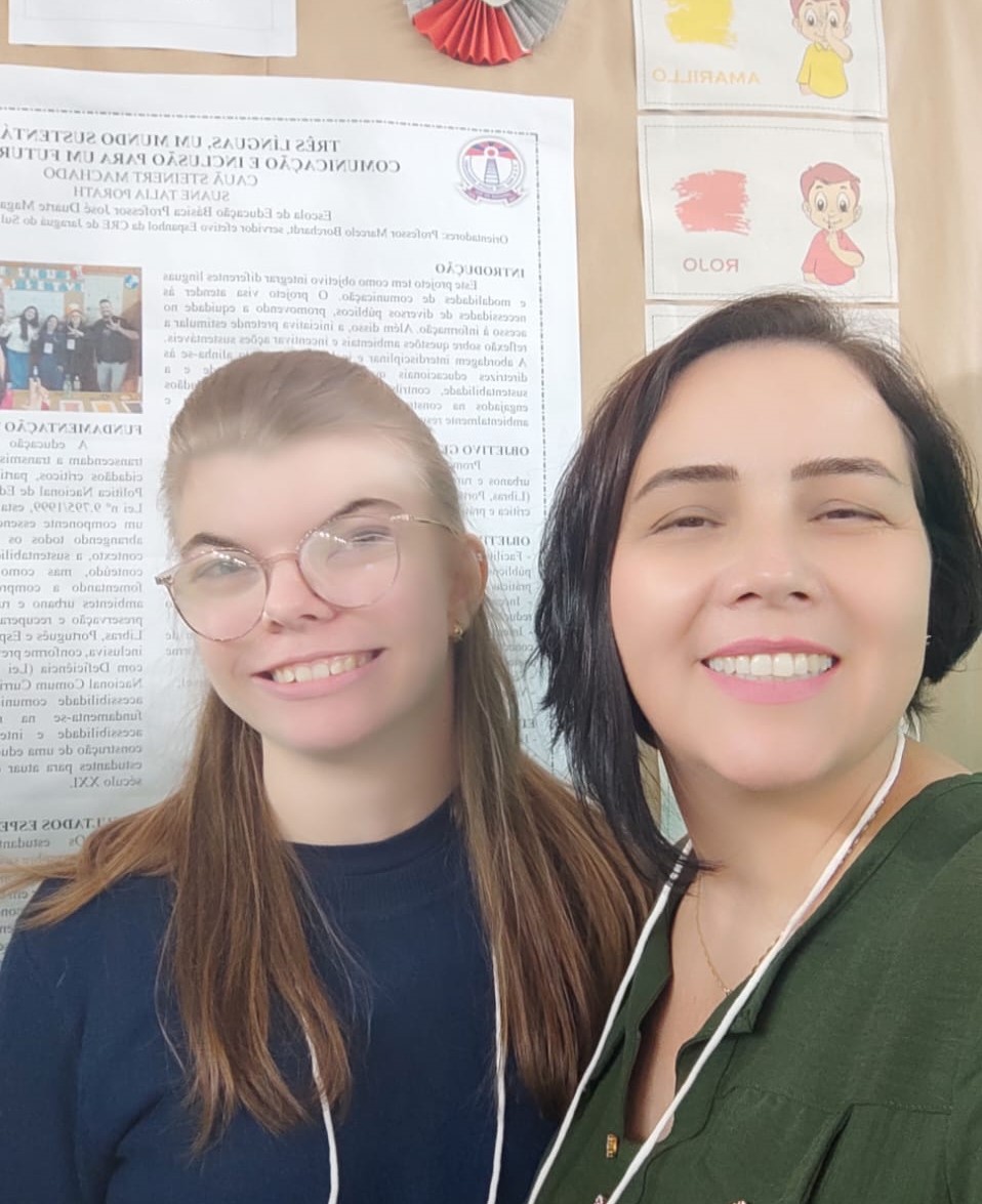A pedagoga Clery Dreher, pós-graduada pelo IFSC Bilíngue e com 30 anos de experiência na Língua Brasileira de Sinais (Libras), iniciou neste ano um trabalho que vem transformando a vida escolar de uma adolescente em Jaraguá do Sul. Contratada como professora bilíngue na Escola Estadual Duarte Magalhães, ela assumiu a missão de acompanhar Suane, de 16 anos, surda de nascença, que estava sem intérprete desde o início do ano letivo.