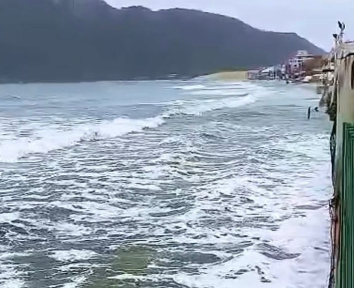 Conforme informações da Defesa Civil municipal, com a força das ondas um muro caiu sobre a areia, impedindo a passagem de pedestres e banhistas, que precisaram entrar no mar para fazer a travessia. Além disso, cinco postes de iluminação foram comprometidos — três caíram na praia e dois estão inclinados.