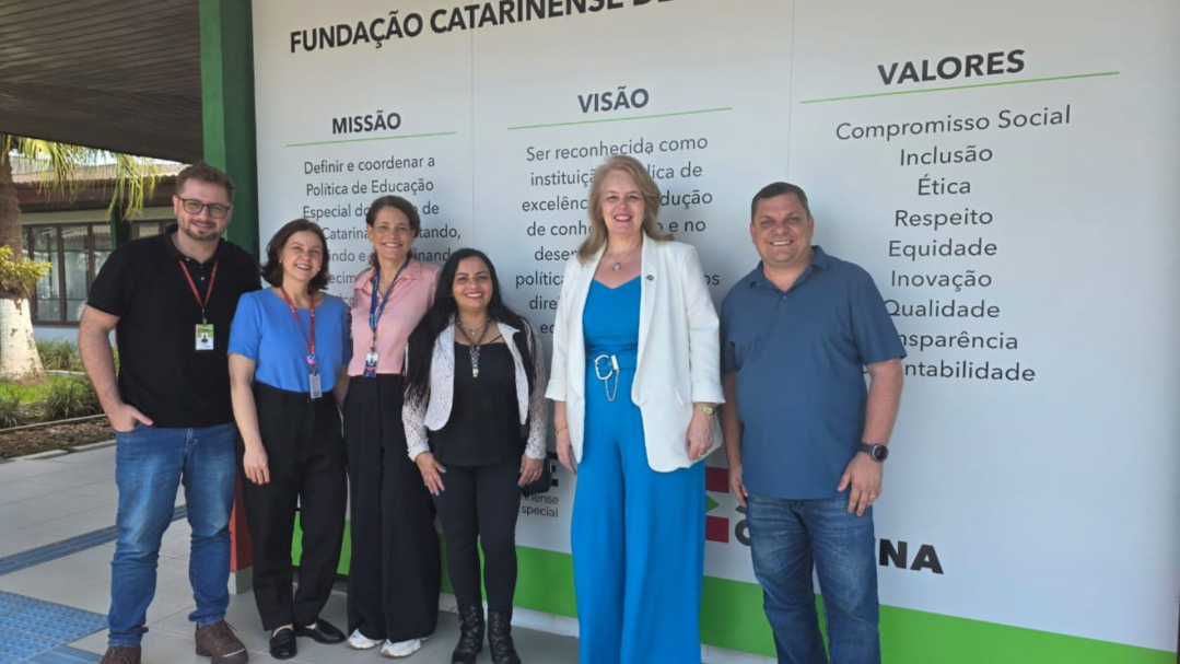 Na Fundação Catarinense de Educação Especial estava a presidente Jeane Rauh Probst Leite, e os assessores Higor Kuntze e Iracema Jonck.