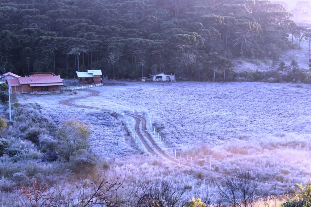 Urupema, conhecida como a cidade mais fria do Brasil, marcou -2,24°C, com geada no amanhecer. Também tiveram temperaturas negativas Bom Jardim da Serra, com -1,81°C, e Urubici, com -1,07°C.