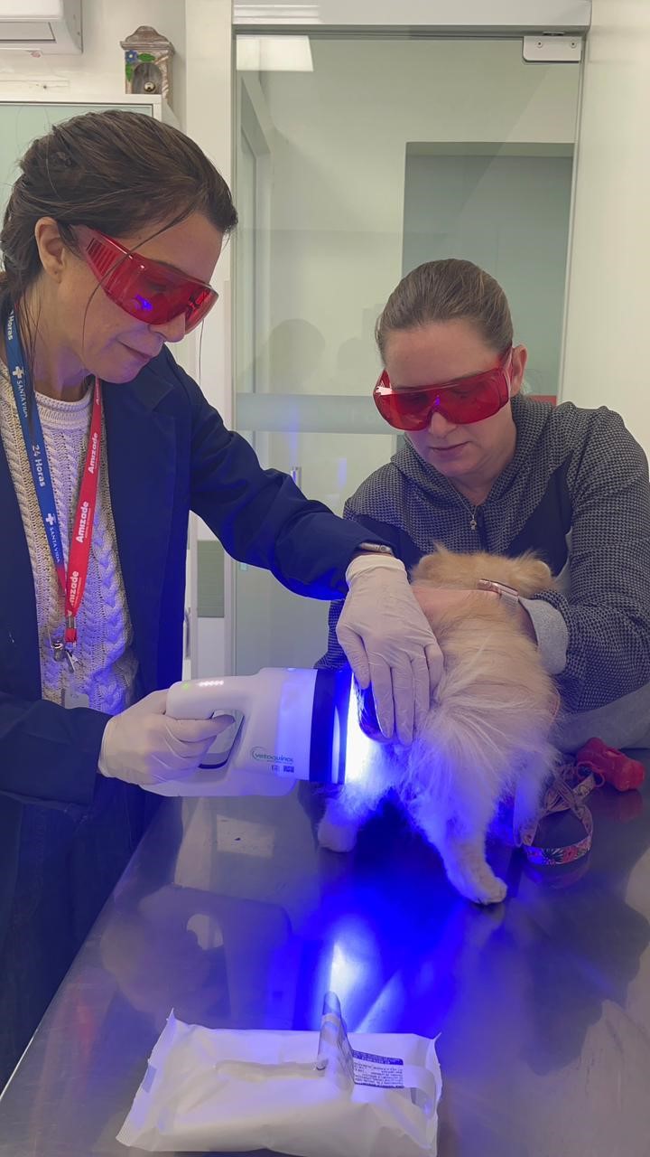 Contudo, o diferencial no processo de recuperação da pele foi a inclusão da fotobiomodulação por meio do Phovia, tecnologia inovadora da Vetoquinol, que acelera a regeneração da pele e permite reduzir o tempo de uso de medicamentos sistêmicos, favorecendo uma recuperação mais rápida, segura e confortável para o pet.