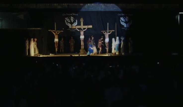 O espetáculo contou com a participação de 48 atores que encenaram momentos marcantes da história de Jesus Cristo, como a crucificação e a ressurreição. Nos bastidores, dezenas de voluntários trabalharam na montagem da estrutura, incluindo a construção do palco São José, com cerca de 140 metros quadrados.