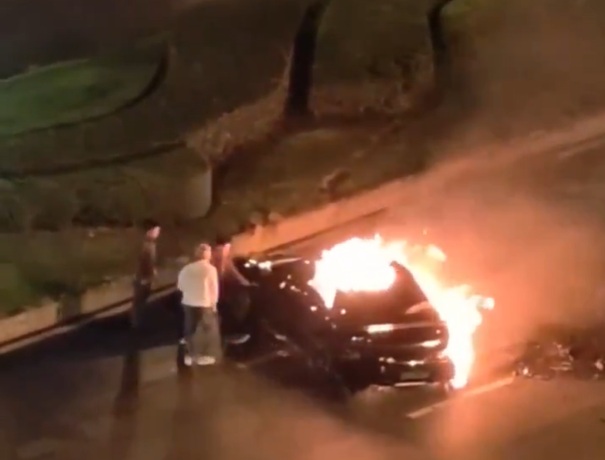 Segundo a polícia, o motorista, um homem de 31 anos com o sobrenome Deng, atingiu outro carro antes de atingir um canteiro e o carro pegar fogo.