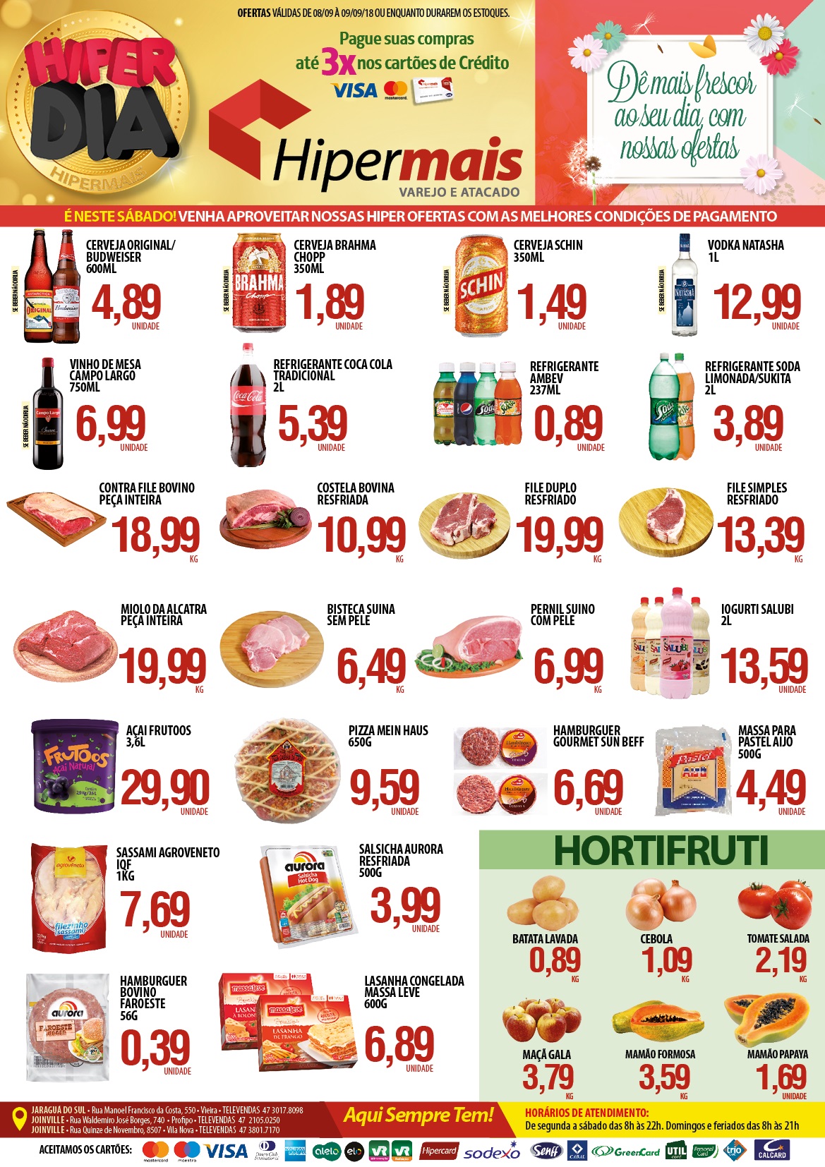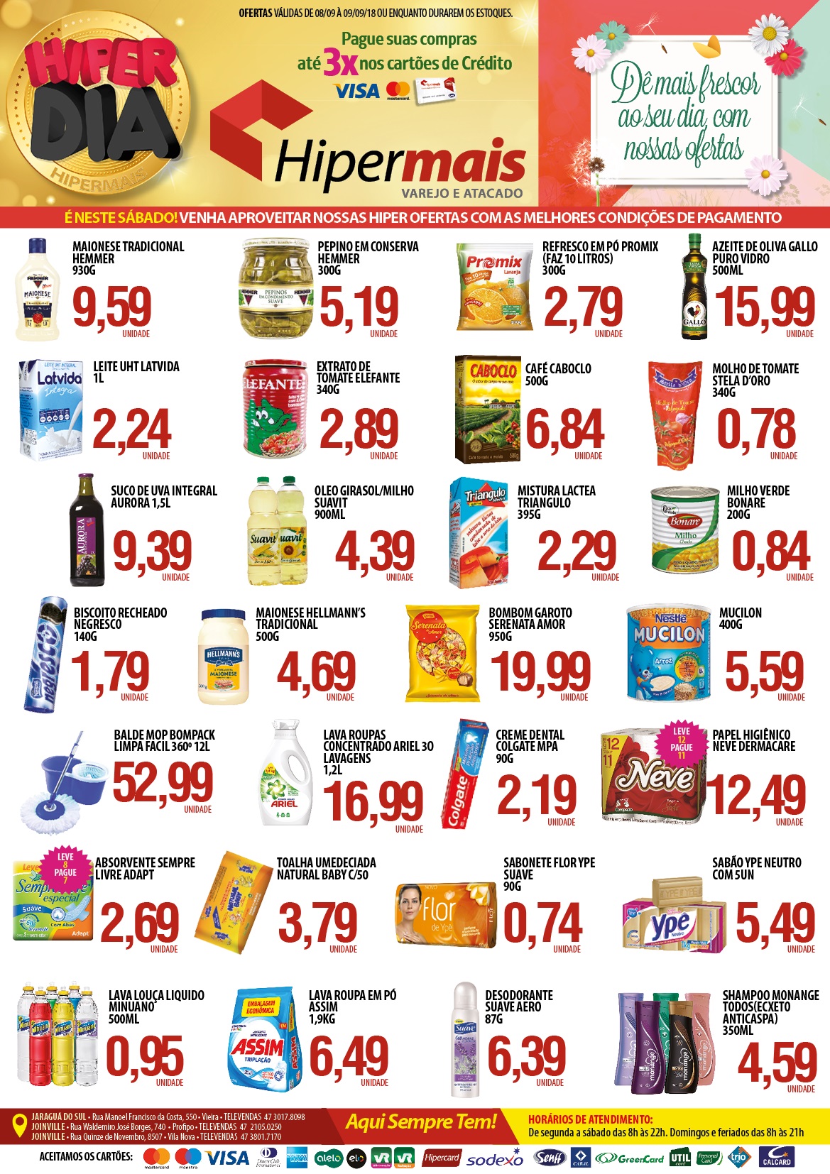 O Hipermais Jaraguá do Sul fica na rua Manoel Francisco da Costa, nº 550, no bairro Vieira. O telefone para contato é (47) 3017-8098. Curta também a página no Facebook e fique por dentro das novidades.