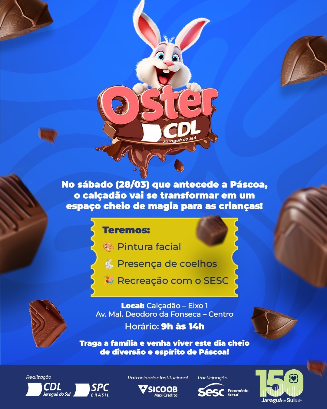 A CDL Jaraguá do Sul promove, no dia 28 de março, a Oster CDL, evento voltado à celebração da Páscoa e à valorização do comércio local, com uma programação especial para toda a família no Centro da cidade.