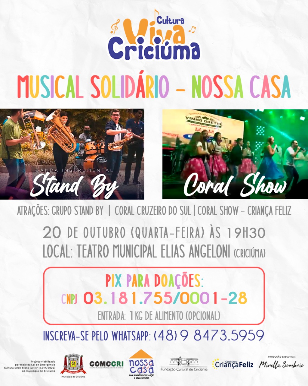 Evento: Musical Solidário Nossa Casa – 19h30.