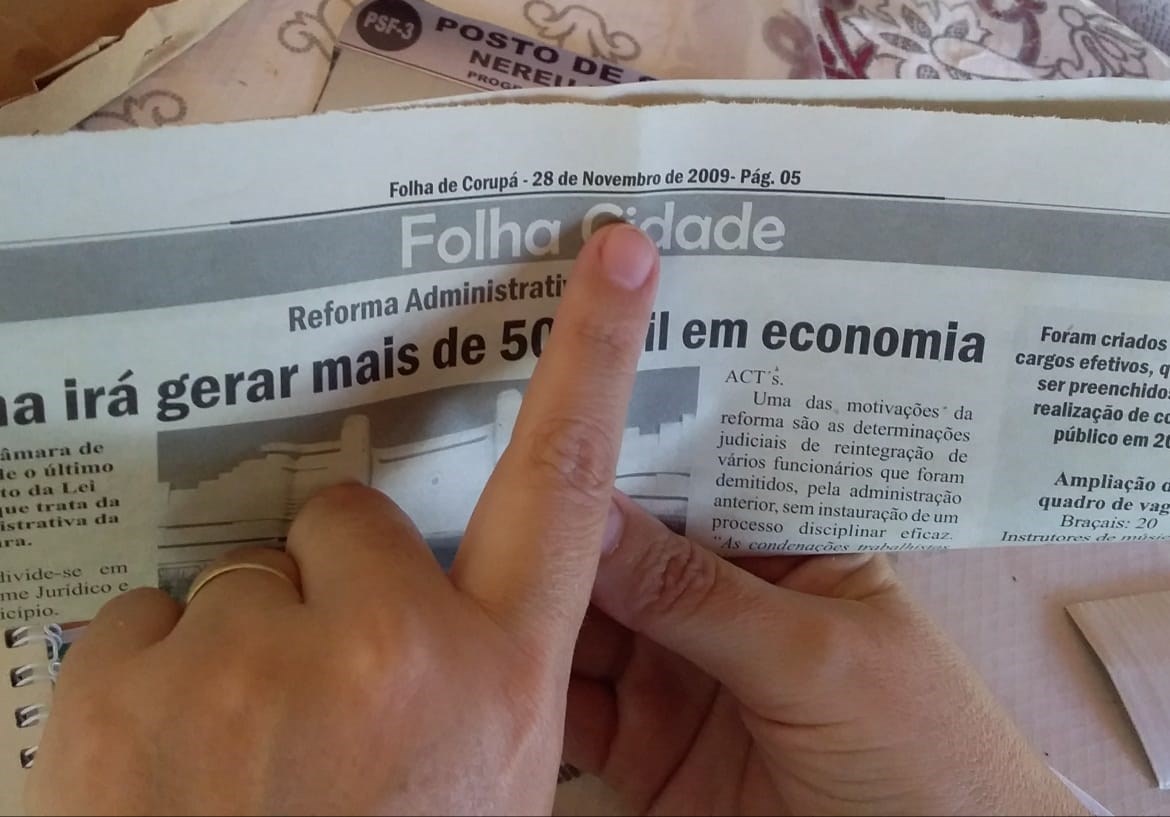 A amiga acrescenta que o dinheiro foi guardado para ver se iria mudar. “Também encontramos cartões de lotérica, que também não mudaram, um jornal da época, o Folha de Corupá, e um joguinho”, lista Thais.
