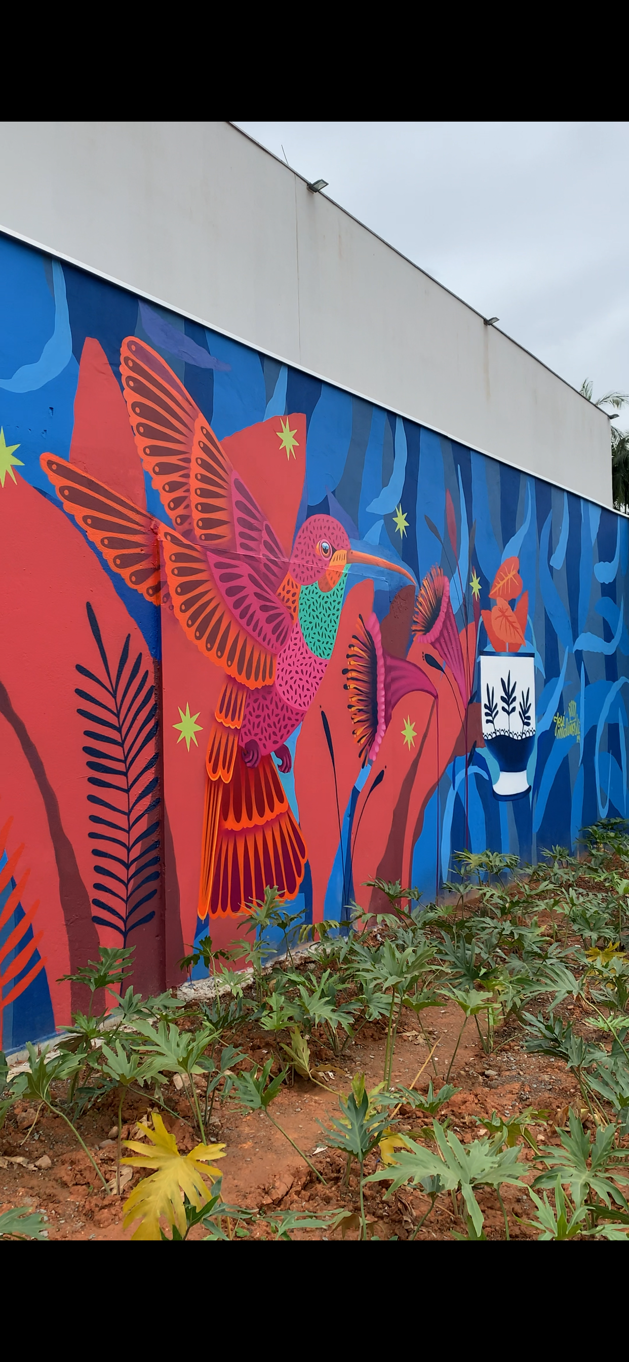 A arte pode ser vista de cima, sob os pés de quem passa pelo local, e na altura dos olhos, em um paredão de 12 metros de largura por 5 de altura. O artista responsável pela obra, Fox Malinoski, utilizou tons de azul como base e trouxe o beija-flor e as flores como elementos principais, refletindo a essência da Proma, já que a maioria dos empreendimentos da construtora tem nome de flor. Na pintura do passeio, no chão, um coração revela que “Todo Proma tem AMOR”, pois o nome da empresa, de trás para frente, forma a palavra amor.