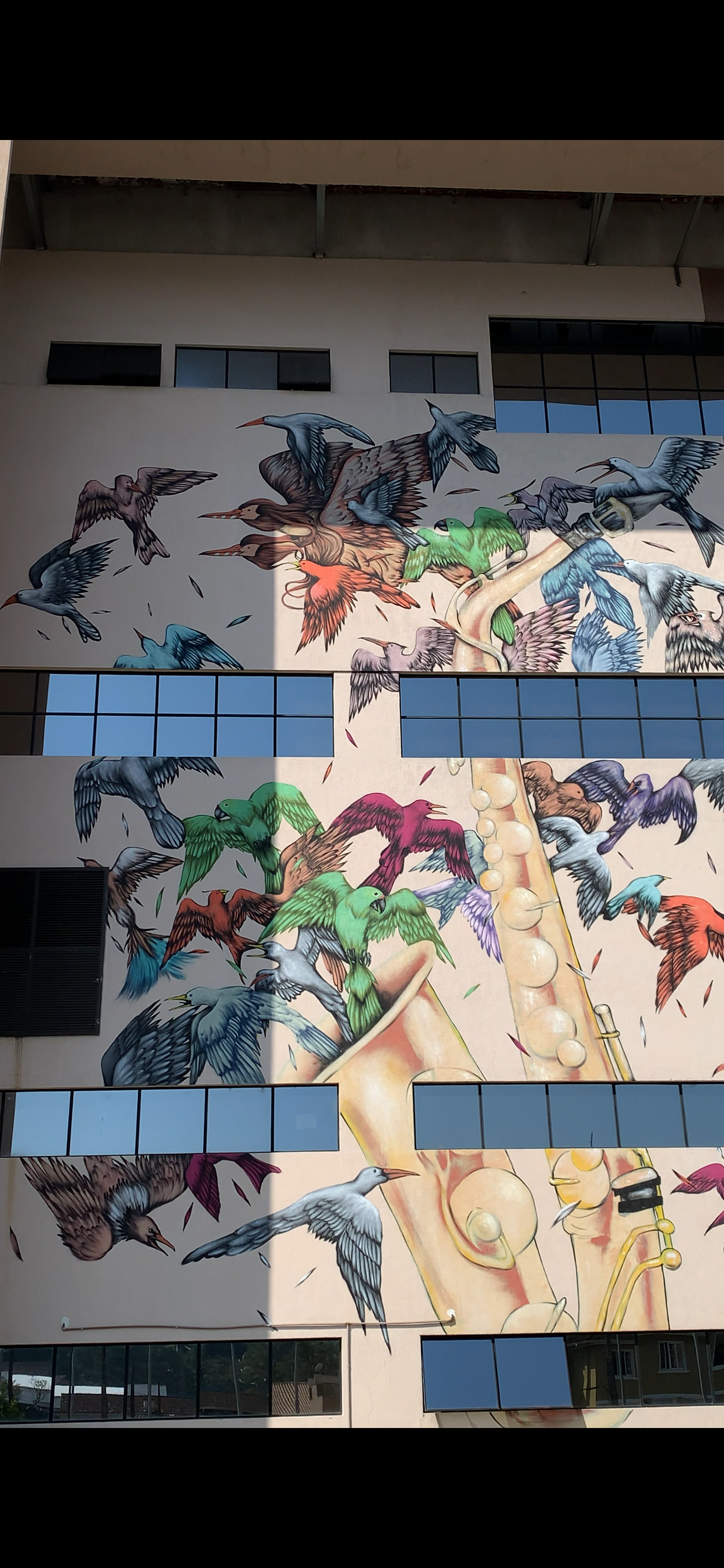 Assinada por Mário Peretto Salerno – um artista multifacetado que é grafiteiro, tatuador e bombeiro militar, a parede de 18 metros de largura se transformou em uma obra de arte urbana no coração da cidade.