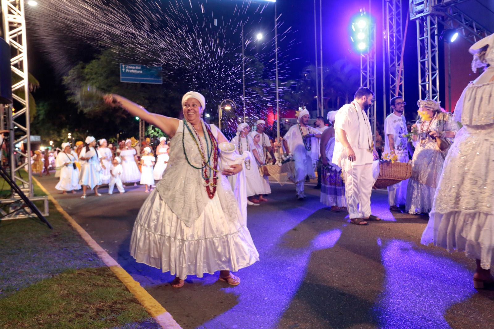 A emoção teve início com a passagem do Afoxé Omilodê pela avenida, em sua lavagem simbólica do caminho por onde depois passaria o desfile. Adultos e crianças derramaram água de cheiro e fizeram a defumação da pista ao som dos tambores e atabaques enquanto ofereciam flores ao público.