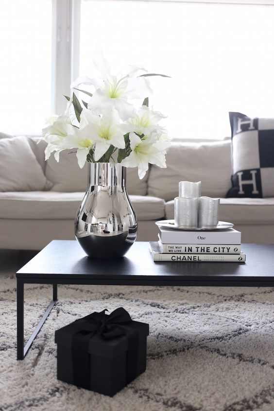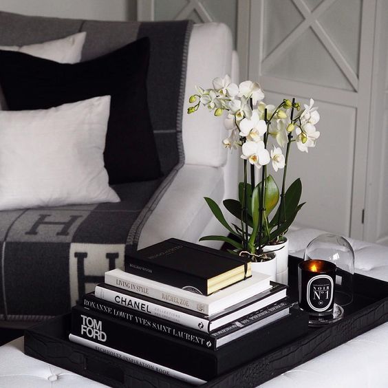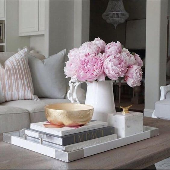 Para dar mais charme ao móvel, escolha os exemplares maiores, com acabamentos luxuosos ou títulos famosos. Procure não empilhar muitos, para não poluir o visual ou atrapalhar a visão do cômodo. Se desejar, utilize um vaso com flores para acompanhá-los.