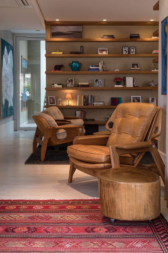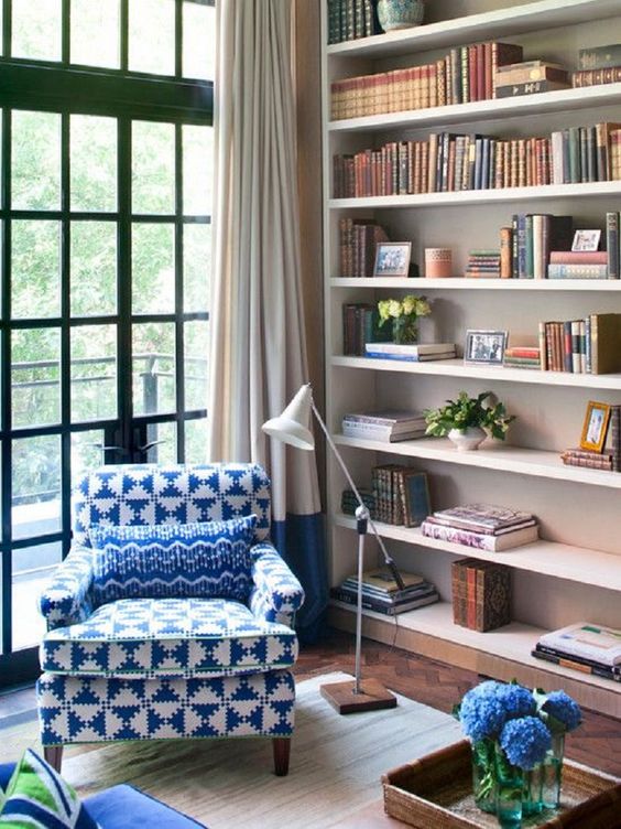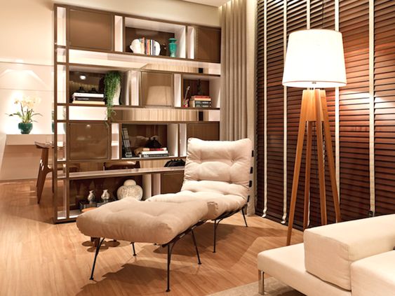 Os amantes de livros devem se preocupar em construir seu próprio recanto de tranquilidade para passar bons momentos mergulhados na leitura. Optar por uma poltrona ou sofá confortável é escolha certeira, e organizar os livros em uma estante de parede inteira garante beleza ao cômodo.