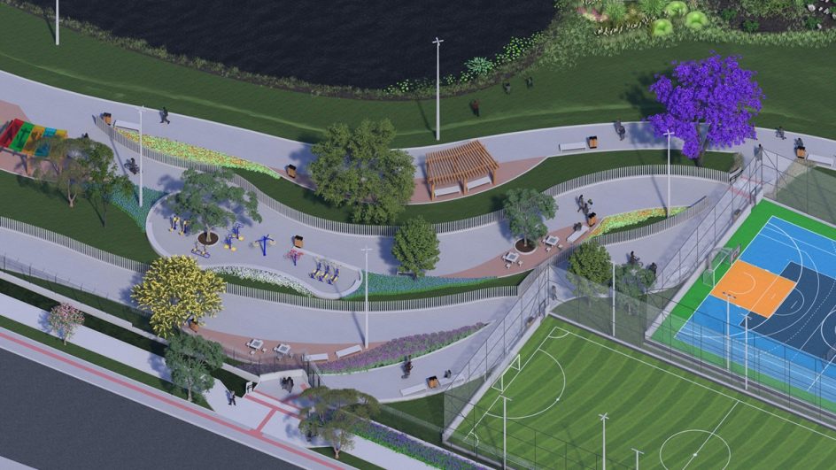 No espaço haverá áreas de recreação e de esportes, como quadra de futebol society e outra poliesportiva, pista de caminhada, academia ao ar livre, parquinho infantil, espaço destinado a animais de estimação, área sensorial para inclusão de pessoas portadoras de autismo e até mesmo um lago artificial, além de mobiliário urbano que inclui bancos e mesas de jogos.