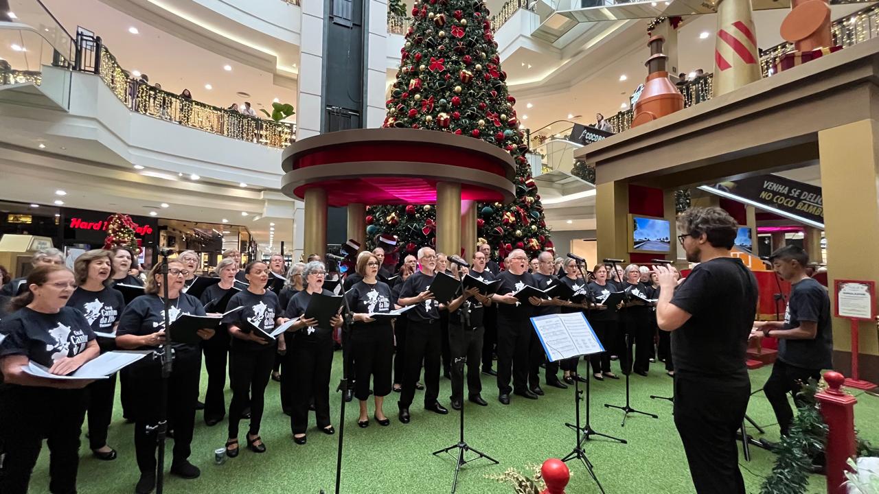 Corais apresentam clássicos de Natal em shopping de Florianópolis