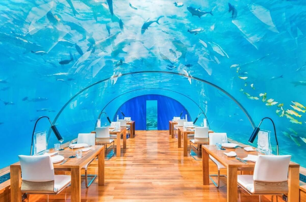 No resort Hurawalhi, nas Maldivas, você encontrará o maior restaurante subaquático de vidro do mundo. Embora não haja quartos submersos, os hóspedes podem desfrutar de suas refeições cercados por peixes neste incrível ambiente. Acima da água, as vilas luxuosas oferecem conforto e uma variedade de comodidades, além de vistas deslumbrantes do mar azul. É o lugar perfeito para uma escapada dos sonhos.