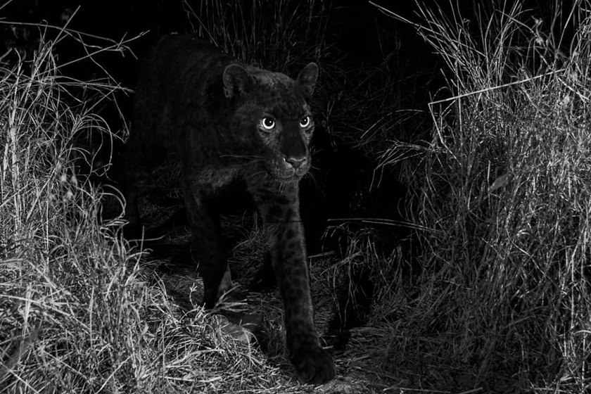 Will Burrard-Lucas publicou no perfil dele no Instagram algumas imagens do espécime, que também é identificado como pantera negra. Nas fotos é possível admirar a pelagem escura, resultado do melanismo.