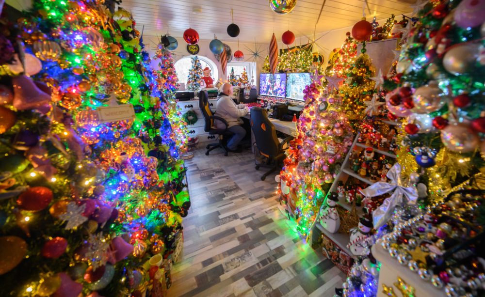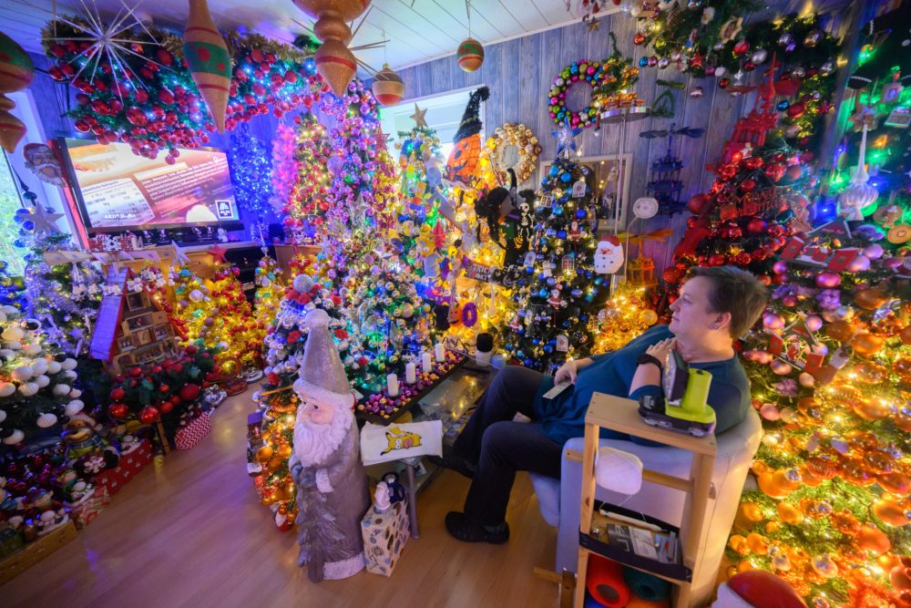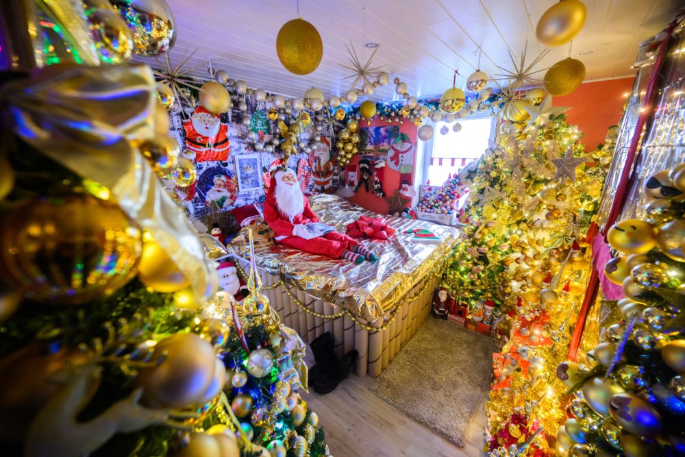 Fotos: Casal bate recorde ao instalar 600 árvores de Natal em uma só casa