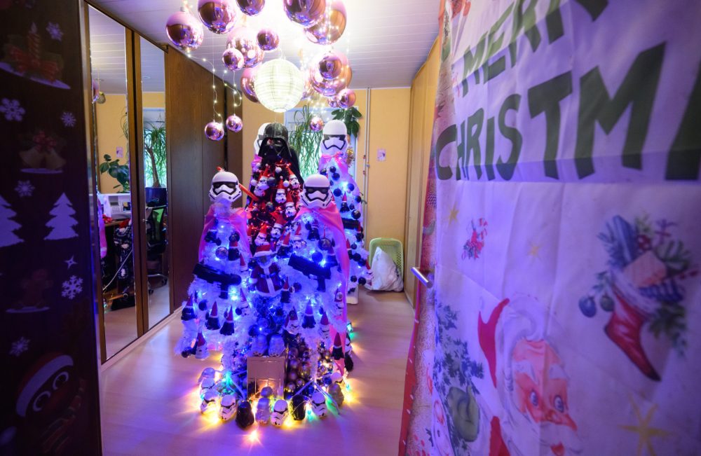 A decoração, que envolve mais de 108 mil enfeites, traz uma mistura de temas clássicos, como o Papai Noel, e referências criativas, incluindo Star Wars e o Grinch.