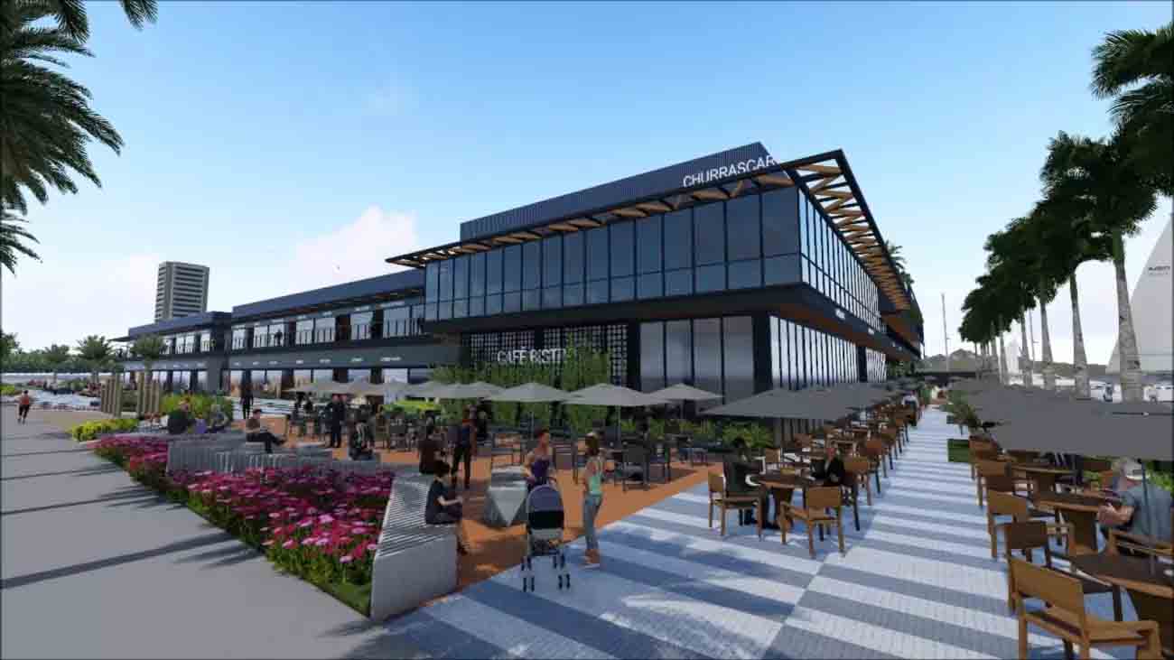 Com conceito “open”, de shopping integrado ao mar, o empreendimento terá 30 mil metros quadrados de área construída, com 120 operações comerciais, incluindo 10 restaurantes panorâmicos com vista para a marina e atrações para compras, diversão e serviços, espaços de convivência, ambientes integrados à natureza, amplo sistema de acessibilidade e rooftop para eventos, além de 500 vagas de estacionamento, bicicletário, espaço kids, fraldário, Pet place, heliponto, ampliando as possibilidades de acesso: pela área urbana, mar e céu.