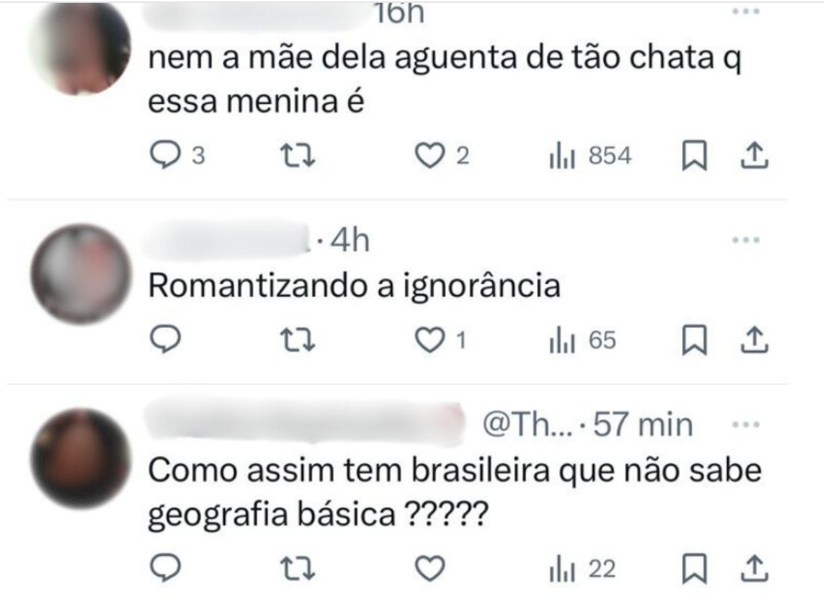 O episódio foi comentado nas redes sociais, com alguns elogiando a espontaneidade de Beatriz e outros criticando sua aparente falta de conhecimento geográfico.