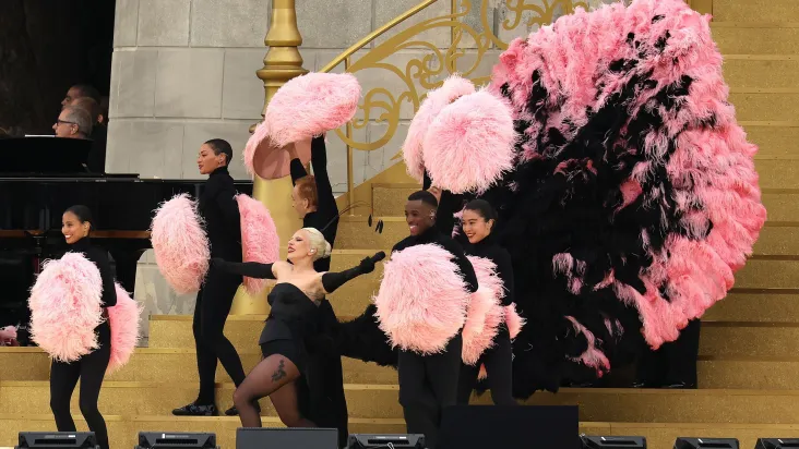A cantora Lady Gaga brilhou com um tributo vibrante à cultura dos cabarés e ao cancan francês durante a cerimônia de abertura dos Jogos Olímpicos em Paris, na sexta-feira (26). À beira do rio Sena, a estrela americana interpretou “Mon Truc en Plumes”, uma icônica canção da cantora e bailarina francesa Zizi Jeanmaire. Sua performance foi um verdadeiro espetáculo, acompanhada por um grupo de dançarinos que, tal como Gaga, estavam vestidos em preto e com adereços que remetiam aos cabarés tradicionais franceses.