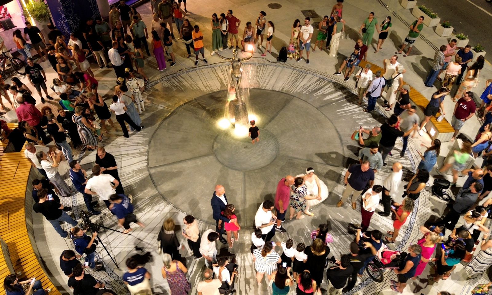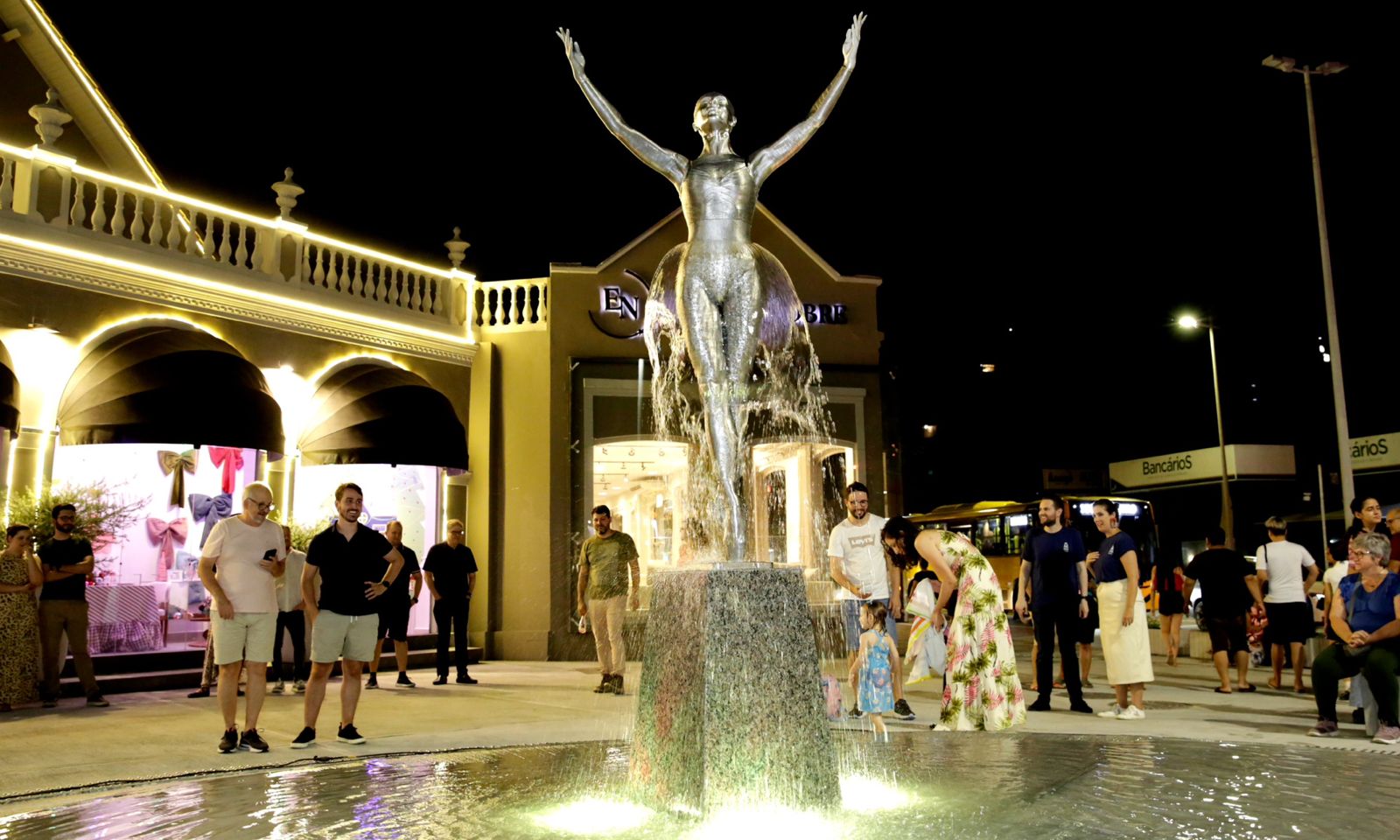 O monumento de uma bailarina em tamanho real, em que a saia é formada por um chafariz iluminado, é a obra de arte destaque no centro da praça. A bailarina está instalada em um espelho d’água. E quem passa por lá não imagina o esforço e dedicação empreendido por dezenas de profissionais para que a peça fosse construída.