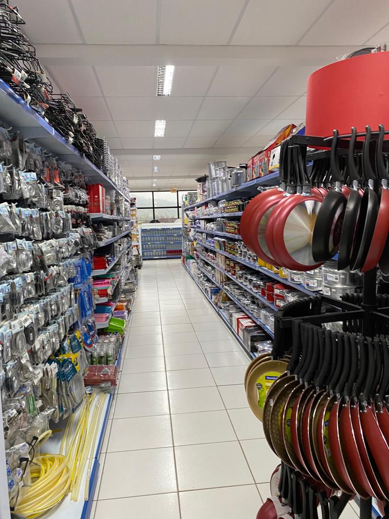No terceiro andar encontram-se eletrodomésticos, limpador de fogão, material de limpeza, peças de fogão, peças de panela e utilidades domésticas.