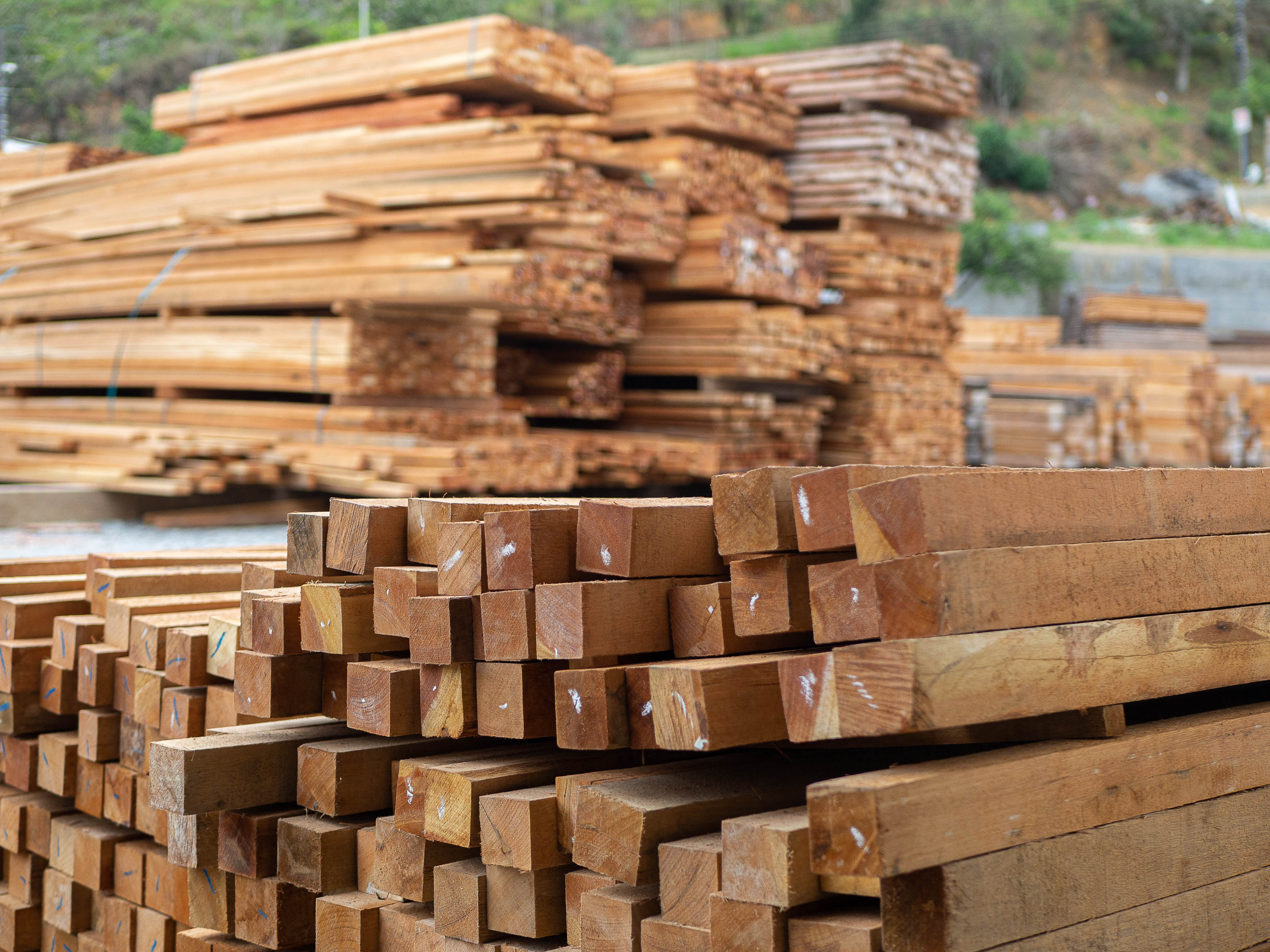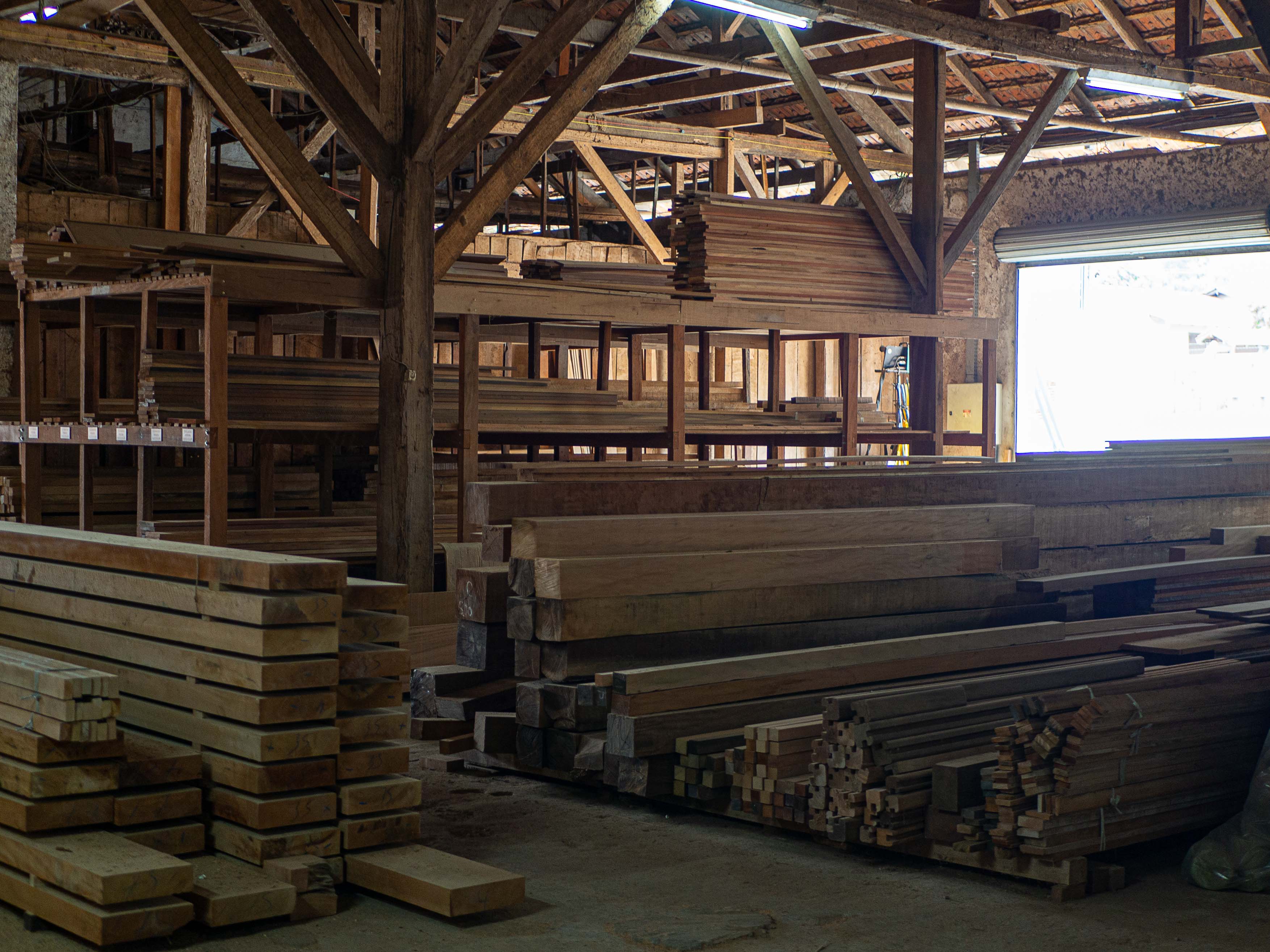 Na linha de beneficiados, há opções de forros, assoalhos, decks, caixilhos, vistas, portas, rodapés, madeiras para casas pré-fabricadas, além de produtos diversos, conforme necessidades do cliente.