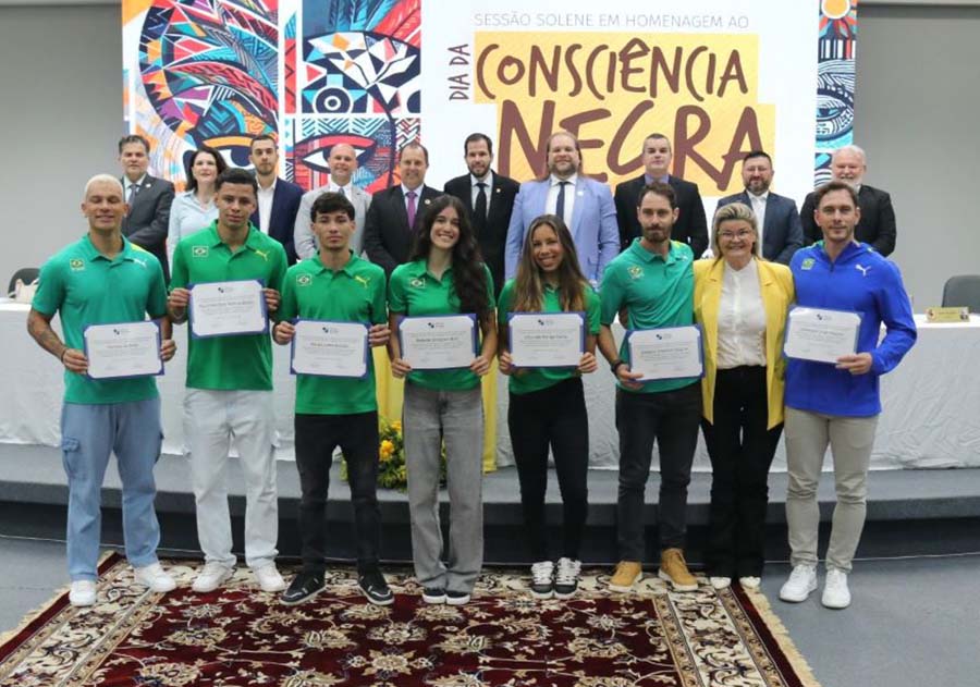 A Câmara Municipal de Jaraguá do Sul aprovou uma moção de aplausos de autoria da vereadora Professora Natália Lucia Petry (MDB) em reconhecimento ao desempenho dos atletas e técnicos da APA/SECEL que integraram a seleção brasileira Sub-20 de Atletismo no Campeonato Sul-Americano 2025.