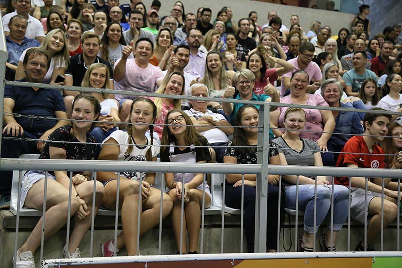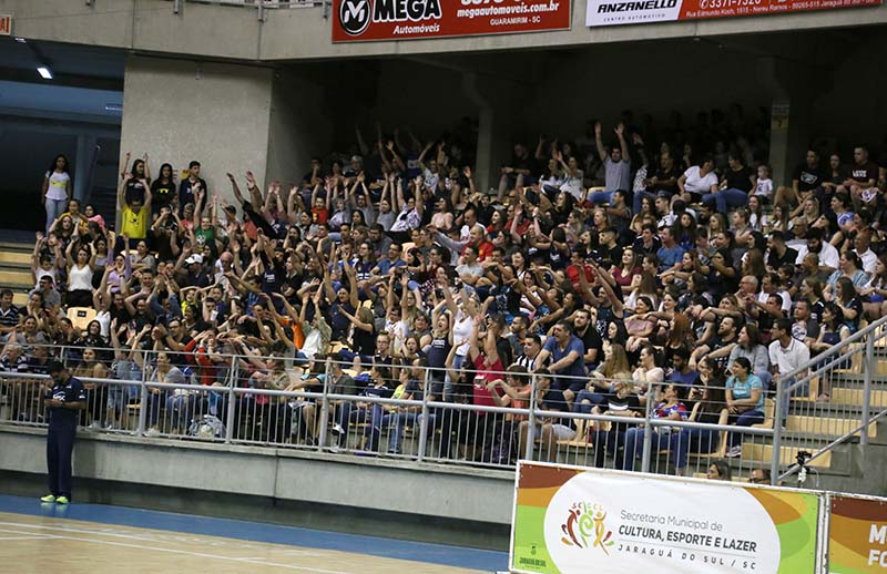 Pessoas de todas as idades encheram o templo jaraguaense para acompanhar a partida, que terminou com vitória da equipe carioca por 3 sets a 0.