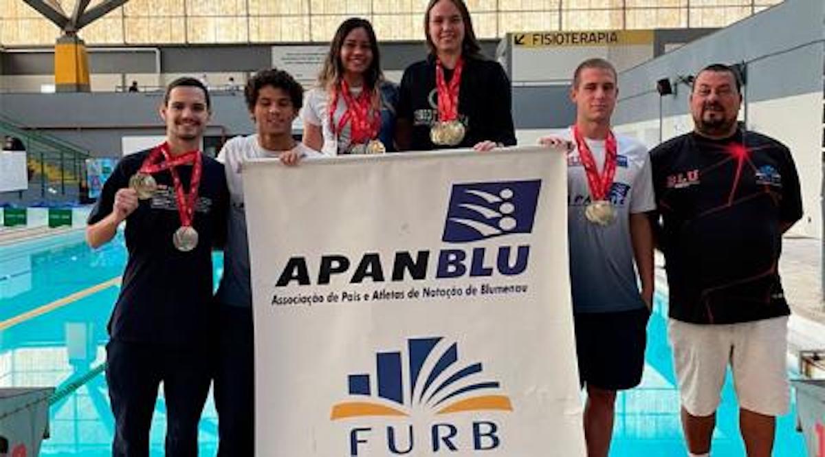 A Universidade Regional de Blumenau (FURB) representada pela Associação de Pais e Atletas de Natação de Blumenau (Apanblu) participou da modalidade nos 65º Jogos Universitários Catarinenses e foi a universidade campeã no feminino, enquanto no masculino obteve a terceira colocação.