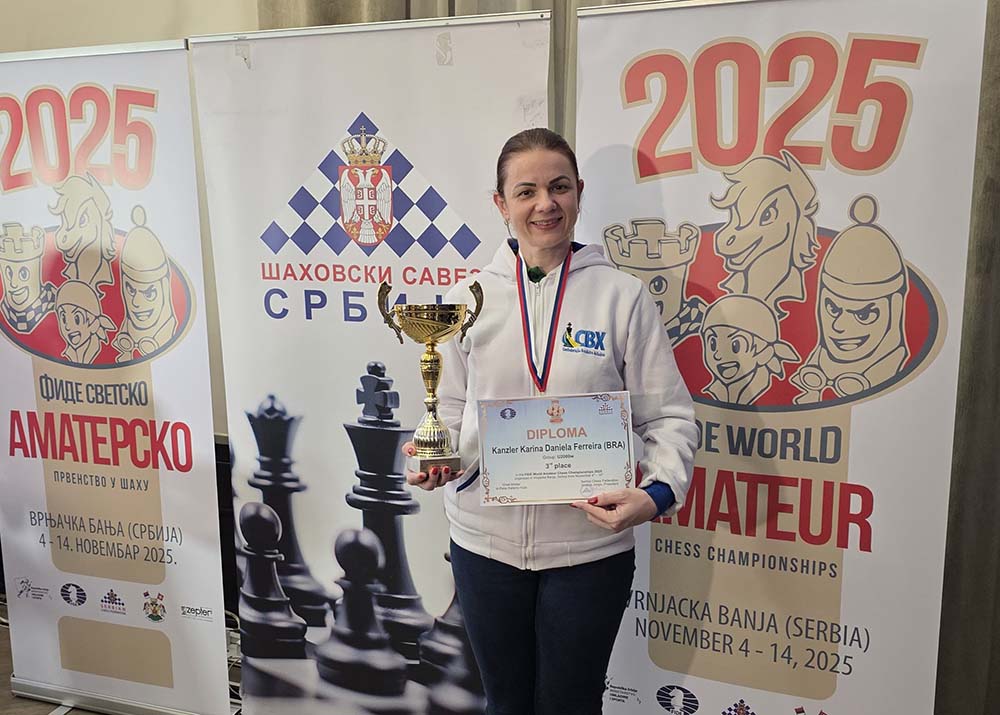 Karina Daniela Kanzler Ferreira escreveu um dos capítulos mais importantes da história recente do xadrez de Jaraguá do Sul e de Santa Catarina ao conquistar a medalha de bronze no FIDE World Amateur Chess Championship 2025, o Mundial Amador, realizado em Vrnjačka Banja, na Sérvia.