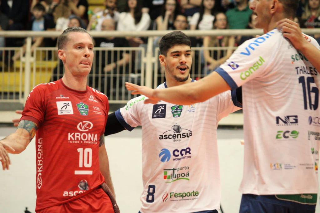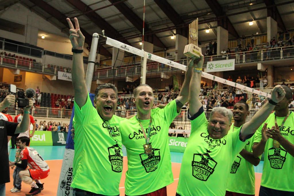 Diante de mais de 2,6 mil pessoas, o Joinville Vôlei venceu Blumenau por 3 sets a 0, parciais de 25/23, 25/16 e 25/15, nesta quarta-feira (25), no Centreventos Cau Hansen, em Joinville, e faturou o inédito título estadual deste ano de forma invicta.